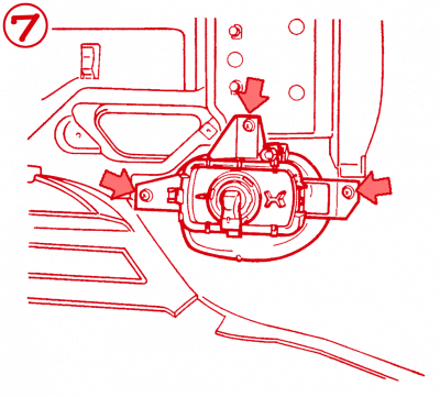 barchetta-club.pl - Wymontowanie zderzaka przedniego - demontaż lampy przeciwmgłowej Aby wymontować lampę przeciwmgłową należy odkręcić trzy śruby wskazane na rysunku 7. Podczas wyjmowania lampy należy uważać na plastikowe ramiona, w które wkręcone były śruby. Po latach eksploatacji plastik traci swoje właściwiości i łatwo jest połamać elementy mocujące. Nie używać siły. Operację powtarzamy dla obu stron.