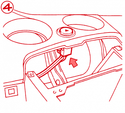 Kolejne dwie śruby znajdują się w schowku podłokietnika. Na dnie schowka znajduje się gumowa wkładka, którą należy wyjąć, aby dostać się do śrub oznaczonych na rysunku (5). Należy odkręcić obie śruby i wyjąć cały element ciągnąc do góry.
