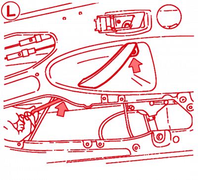 Klamka wewnętrzna drzwi prawych przykręcona jest trzema śrubami z łbem imbusowym. W modelach z klamkami pokrytymi skórą naturalną dostęp do śrub dolnych może wymagać przeciśnięcia klucza przez małe wycięcia w pokryciu skórzanym. Wszystkie trzy śruby dostępne są od zewnątrz i nie jest wymagany demontaż okładzin drzwi.