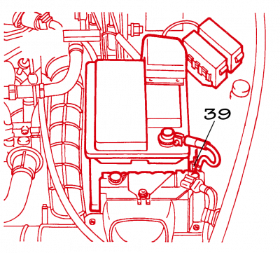 W komorze silnika w dolnej, przedniej części lewej podłużnicy znajduje się główne lewe przyłącze masy. Przewody instalacji elektrycznej zebrane są razem i zaciśnięte w końcówce oczkowej. Ta z kolei przykręcona jest śrubą M8 do blachy wystającej z podłużnicy a podtrzymującej podstawę akumulatora.